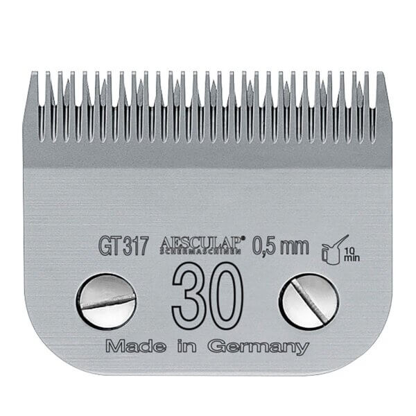 Les têtes de rasoir Aesculap sont fabriquées en acier au carbone de haute qualité et possèdent un revêtement spécial résistant à la corrosion. De plus, les têtes de rasage SnapOn garantissent une coupe longue et précise et se distinguent par leur qualité de fabrication "Made in Germany". La tête de rasage SnapOn n° 30 peut être utilisée avec les tondeuses suivantes : Aesculap Fav 5 (GT105) et Fav 5 CL (GT306). La longueur indiquée sur les têtes de tonte, est la longueur restante en millimètres de la fourrure après la coupe.