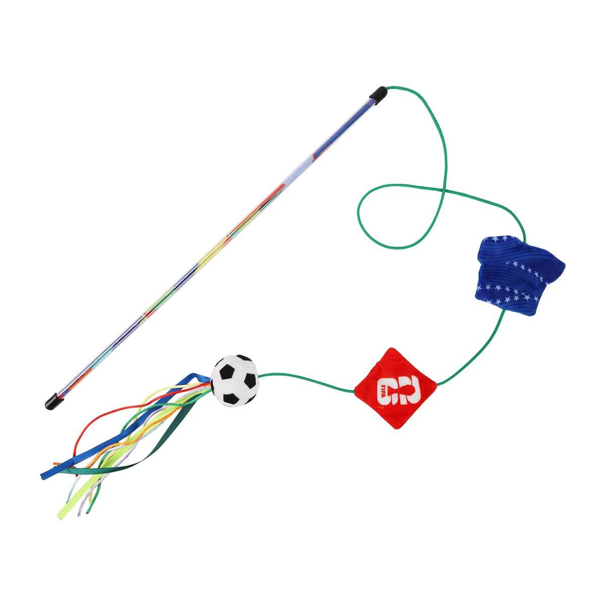 Le jouet canne à pêche pour chat Soccer au design de la Coupe du Monde FIFA 2026 offre un plaisir de jeu interactif et favorise les activités communes. Grâce à des mouvements ciblés, l’instinct naturel de chasse est stimulé et l’activité est augmentée. En même temps, le jeu renforce le lien entre l’humain et le chat et offre un divertissement varié.