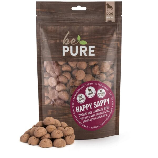 Comment rendre ton chien heureux ? Avec nos biscuits Happy Sappy de bePure, chaque nez de chien sera heureux. Ils ont été fabriqués avec de l'agneau et sans sucre ajouté. Grâce à leur forme de bouchée, ils constituent le snack idéal entre les repas ou comme récompense. Grâce à leur emballage refermable, les Happy Sappy de bePure sont parfaits pour les déplacements.