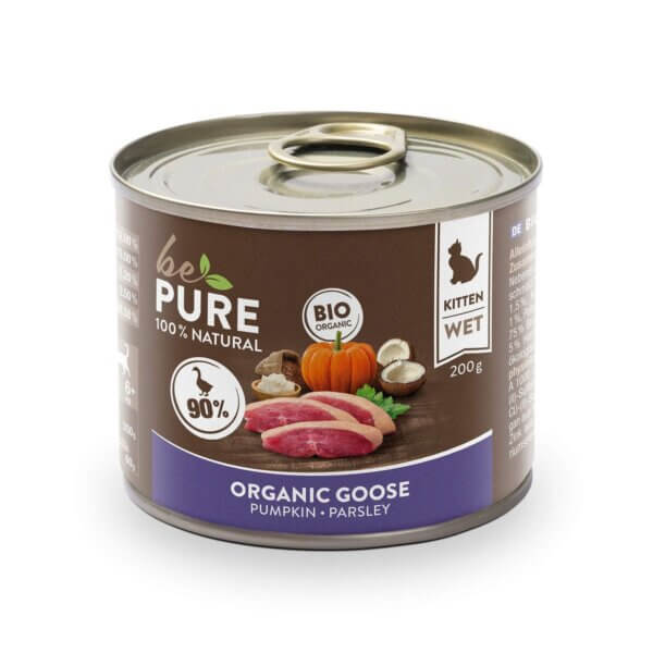 L'aliment humide bePure Bio Goose à la citrouille est composé d'ingrédients naturels et offre une alimentation saine et équilibrée. L'aliment complet pour jeunes chats a une teneur élevée en viande. Étant donné qu'il ne contient qu'une seule source de protéines animales (l'oie), l'aliment humide convient également aux chats sensibles à la nutrition. La viande d'oie se compose de la poitrine, du foie, du cœur, du cou et de la carcasse. La citrouille est riche en vitamines, minéraux et fibres, ce qui procure une grande sensation de satiété. Gâtez votre nez renifleur avec notre nourriture humide de bePure.