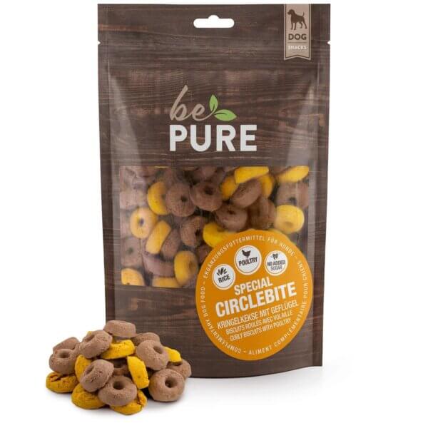 Nos biscuits Special Circlebite de bePure sont idéaux pour les petites faims. Grâce à leur forme de donut mignonne et aux biscuits bicolores, ils attirent vraiment l'œil. Le snack contient de la volaille et du riz et est tout simplement délicieux. Faites plaisir à vos amis à quatre pattes préférés.