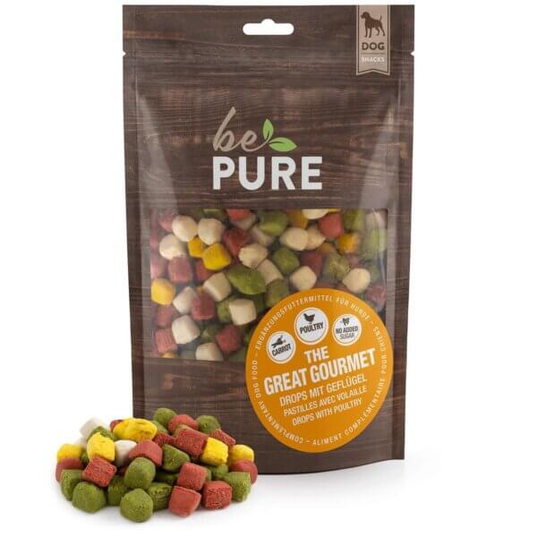 Nos biscuits The Great Gourmet de bePure sont le snack idéal pour les chiens en déplacement. Le snack est composé de volaille, de carottes et de petits pois. Les biscuits colorés n'attirent pas seulement le regard, ils sont aussi une friandise parfaite pour ton boule de poils.