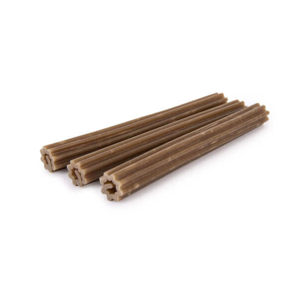 Les G-Snacks à mâcher Braaaf végétaliens ont une texture ferme mais souple, ce qui permet de les mâcher en toute sécurité. La forme de la barre à mâcher permet à ton chien de tenir plus facilement le snack avec ses pattes avant et la forme en étoile permet un bon nettoyage des dents. Les friandises végétaliennes sont composées d'ingrédients naturels à base de pommes de terre et d'amidon de maïs. Ils sont inodores, naturels et très bien acceptés. De plus, ils ne contiennent pas de produits d'origine animale.