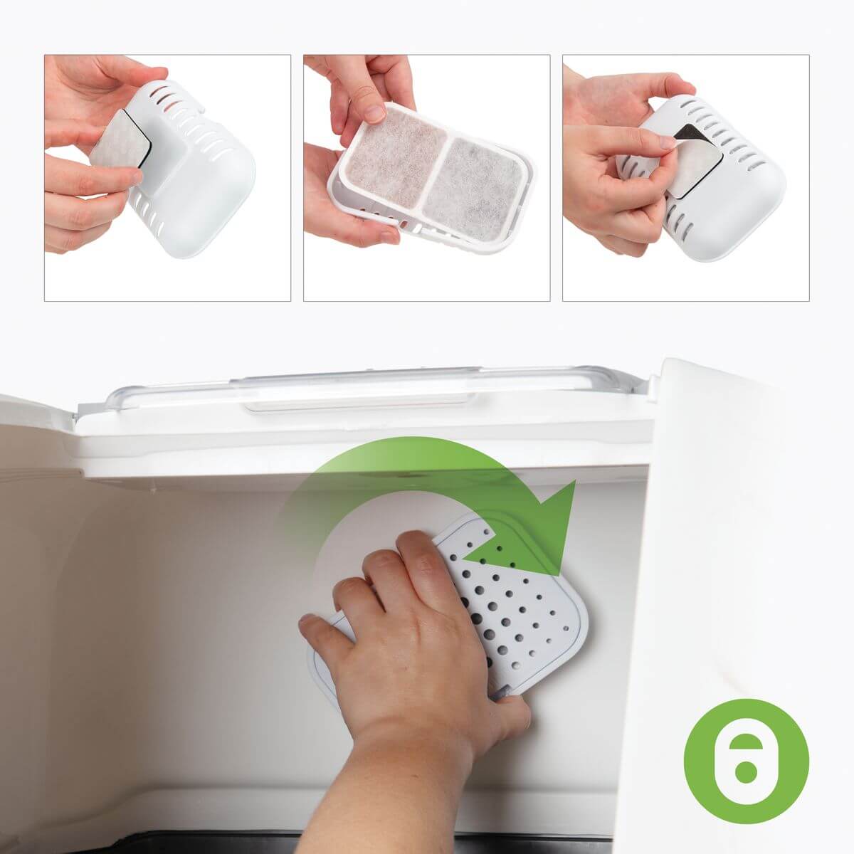 Le Catit Airsift Pod est un filtre anti-odeurs puissant avec support réutilisable, compatible avec toute litière pour chat équipée d’un couvercle. Le tampon filtrant Airsift intégré à double action réduit efficacement les mauvaises odeurs en les absorbant et en les liant, plutôt que de simplement les masquer. L’association du Catit Magic Blue éliminateur d’ammoniac et du charbon actif assure un contrôle fiable des odeurs et un environnement plus agréable autour de la litière du chat.