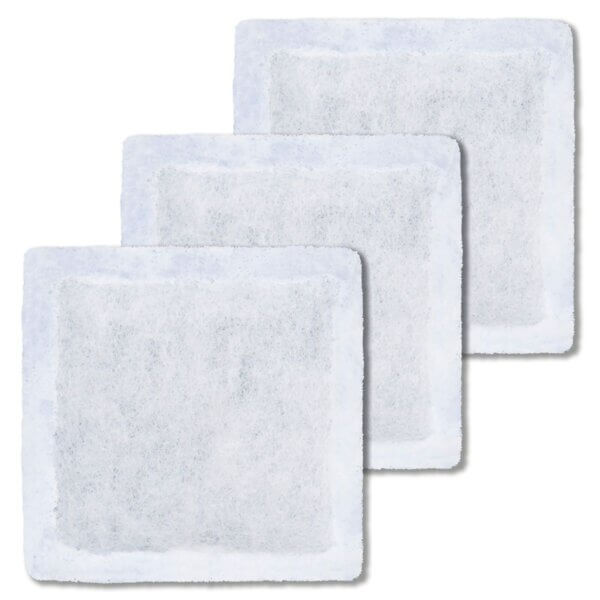 Set de 3 filtres adaptés à la mini fontaine à fleurs Catit - Le charbon actif contribue à réduire les odeurs et à absorber les impuretés. Le filtre capture les grosses particules de saleté et les impuretés.