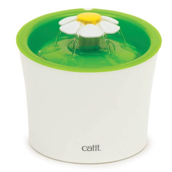 La fontaine à fleurs fonctionne avec de l'eau courante pour encourager ton animal de compagnie à boire davantage. Pour la santé de ton chat, il est important de boire régulièrement, car cela contribue à un bon fonctionnement des reins et prévient le risque de formation de cristaux pouvant entraîner des maladies des voies urinaires.