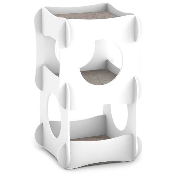 Grâce à son allure rétro, le Condo Vesper vous rappellera à vous et votre chat les années 70. Le meuble Condo est muni de trois différents niveaux équipés de coussins rembourrés et moelleux sur lesquels votre félin peut jouer ou relaxer. Chaque niveau comprend des ouvertures sur tous les côtés permettant ainsi à votre chat de ne jamais se sentir coincé.
