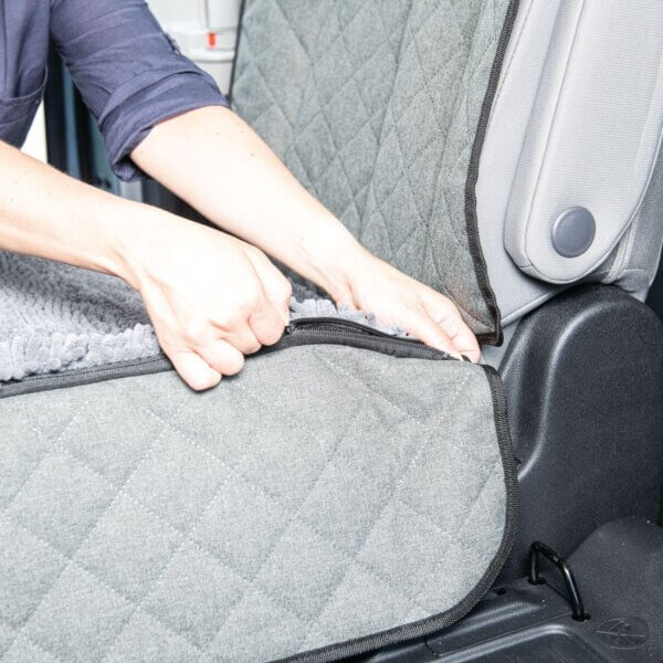 La housse de siège de voiture Dirty Dog 3 en 1 avec hamac dispose de 4 fermetures à ressort qui maintiennent le hamac bien en place. Le fond en caoutchouc antidérapant empêche la housse de glisser ou de s'emmêler. En outre, 2 ancrages de siège peuvent être fixés dans les fentes du siège afin d'éviter qu'il ne glisse sous les pattes.