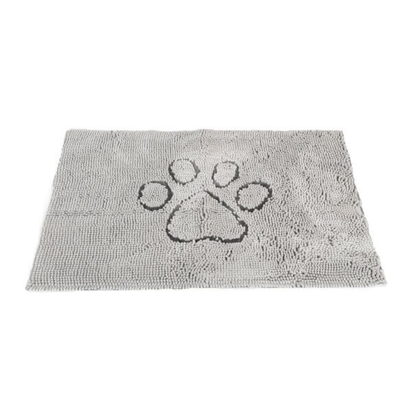 Le miracle d`aspiration ! Ce paillasson pour chien de Dog Gone Smart est un vrai barrage anti-saleté. Des milliers de cordes de microfibre plus molles à la surface du paillasson absorbent en un rien de temps la boue et l`eau que le chien amène dans la maison. Le «Dirty Dog Doormat» fonctionne comme une éponge géante. Elle absorbe une quantité impressionnante de sept fois son propre poids. Le sol reste ainsi propre et sec. Egalement dans la voiture ou dans le couffin du chien, le paillasson s`utilise facilement, c`est véritable aide au ménage car premièrement il agit totalement contre la saleté et, deuxièmement il est vite propre et rapidement sec.