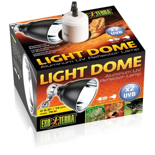 La lampe à réflecteur Light Dome est parfaite pour une utilisation dans les terrariums Exo Terra. Comme elle est petite, elle s'adapte parfaitement au couvercle du grillage. Le réflecteur en aluminium brillant augmente jusqu'à 100% la sortie de lumière, les rayons UVB et UVA.