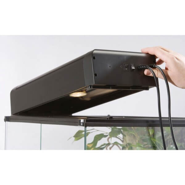 Le Compact Top Exo Terra est un couvercle de lampe de terrarium compact conçu pour le terrarium en verre Exo Terra. Facile à installer, le couvercle peut accueillir des ampoules de terrarium ou des ampoules à incandescence de faible puissance. Une combinaison de différentes ampoules pour terrarium Repti Glo Exo Terra (Q317.226, Q317.227, Q317.241) peut être utilisée pour obtenir les proportions idéales de lumière ultraviolette et visible.