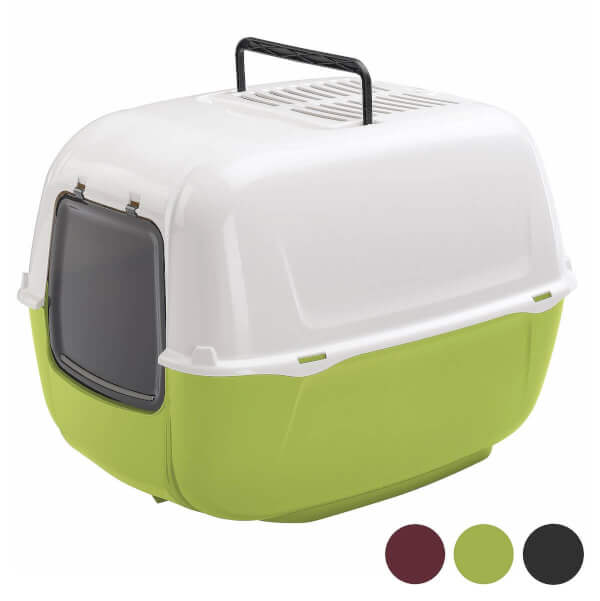 Prima est un bac à litière très pratique en plastique avec capot. Il est équipé de tout le nécessaire pour offrir à ton chat le maximum d'intimité et de tranquillité pendant qu'il fait ses besoins quotidiens. Prima est doté d'une poignée qui te permet de le placer où tu le souhaites. Elle contient un filtre à charbon actif pour neutraliser les odeurs. Grâce à son système de verrouillage simple, il est facile à nettoyer. Le bac à litière Prima a été récemment redessiné pour être plus convivial et plus accueillant. Sa forme ronde donne à ton chat plus d'espace et de confort à l'intérieur.