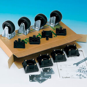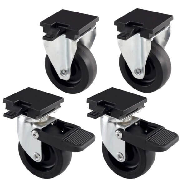 Le kit L388B comprend deux roues fixes et deux roues pivotantes avec frein.