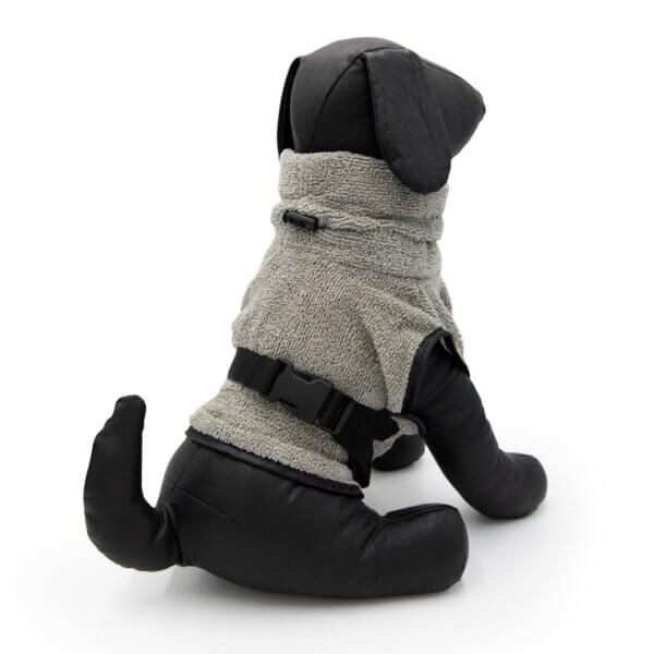 Le peignoir Freezack gris doux en tissu éponge permet un séchage rapide et doux de votre chien après une promenade sous la pluie ou après une baignade dans le lac ou dans vos quatre murs. Après le bain, il protège votre ami à quatre pattes du refroidissement. De plus, il peut s’allonger avec le peignoir sur le sol ou dans son lit de chien sans se mouiller ou se salir. Si vous trempez le peignoir dans l’eau avant de l’enfiler, vous pouvez également l’utiliser de manière optimale comme rafraîchissement pour votre chien lors des journées chaudes d’été. Le peignoir possède des boucles en plastique qui sont très faciles à enfiler. La ceinture réglable en différentes tailles sur la région abdominale assure un confort de port élevé supplémentaire.