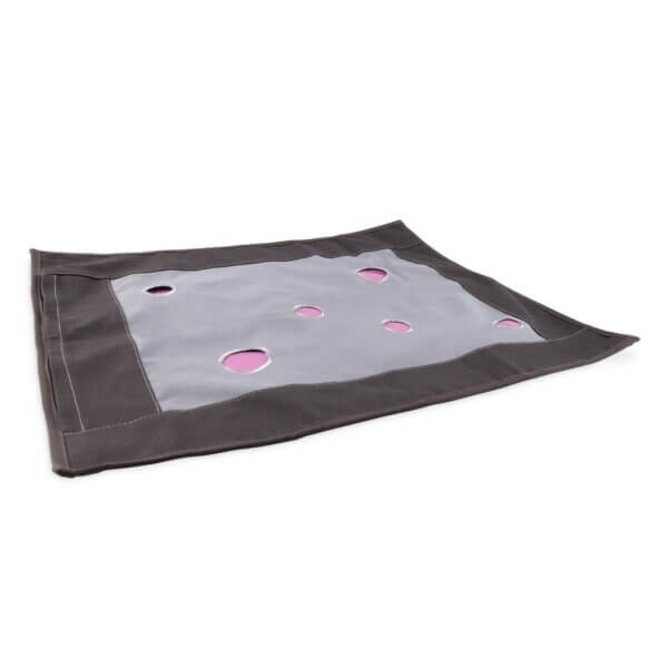Avec le tapis de jeu Freezack, vous pouvez aider votre chat à rester en pleine forme physique et mentale. Cela est particulièrement important pour les chats d’appartement mais aussi pour les chats qui, en raison de leur santé, ne peuvent pas aller dehors. Laissez à votre chat le temps de s’habituer au tapis. Tout d’abord, répartissez quelques friandises sur le tapis et laissez votre chat les déguster. Dès que votre chat réagit positivement quand vous préparez le tapis, vous pouvez commencer à répartir les friandises dans les trous, tout en les gardant visibles. Après un moment, vous pouvez répartir les friandises dans toute la couverture. L’odeur des friandises et le bruissement du film de protection à l’intérieur de la couverture éveillera l’intérêt de votre chat. Au lieu de cacher des friandises, vous pouvez aussi ouvrir le tapis et faire bouger de part et d’autre un plumeau pour chat à l’intérieur du tapis pour jouer avec votre chat. Lavable à la main à 30°C. Taille: 69x49cm
