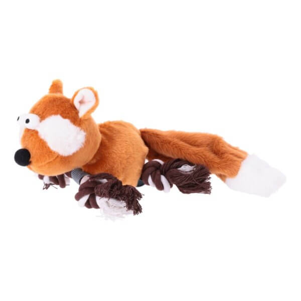 Le jouet pour chien amusant en forme de renard offre des heures de jeu! Deux couineurs encouragent à jouer et à mâcher, tandis qu'une balle de tennis dans le ventre réserve une surprise. Le peluche douce invite aux câlins, et les cordes mobiles qui passent à travers le ventre offrent encore plus de divertissement. Parfait pour les jeux de lancer et de rapport!