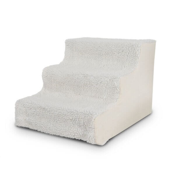 Escalier pour chien L’escalier supporte une charge de 35 kg maximum. Ne pas l’utiliser sans revêtement. Ne pas le laisser dans une voiture. Le revêtement doit être lavé à la main à l’eau froide avec une lessive pour linge délicat. Ne pas le mettre au sèche-linge ni le repasser. Vous pouvez nettoyer les parties en plastique avec un chiffon mouillé puis les laisser sécher.
