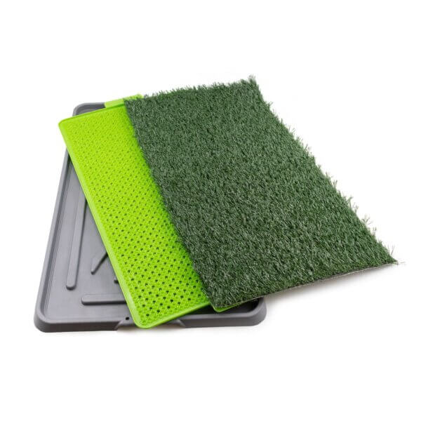 Le Freezack Toilet Trainer vous offre un moyen pratique d‘apprendre à votre animal de compagnie à faire ses besoins, aussi bien à l‘intérieur qu‘à l‘extérieur. Il convient particulièrement aux chiots qui viennent d‘emménager dans un appartement ou aux chiens plus âgés qui ont des difficultés à aller à l‘extérieur. Le tapis de gazon artificiel simule l‘aspect et la sensation de l‘herbe réelle. Il aide les animaux à se détendre et à apprendre à faire leurs besoins dessus. Les toilettes de dressage peuvent être facilement installées dans la salle de bains, la buanderie, sur le balcon ou presque partout où on en a besoin. Elles se composent d‘un système simple en trois parties : un tapis en gazon synthétique, un bac de récupération et une grille de drainage. La grille de drainage maintient le tapis de gazon à l‘écart du liquide fécal collecté. La structure du tapis de gazon synthétique souple permet à l‘urine de passer rapidement au travers pour être récupérée par le bac situé en dessous. Ce système peut être utilisé tel quel, mais il est également possible de recouvrir l‘intérieur du bac sous le gazon avec des protections hygiéniques absorbantes jetables, de sorte que les excréments liquides soient retenus et ne restent pas stagner dans le bac. Le bac est toutefois très facile à nettoyer. Il suffit simplement de le rincer à l‘eau savonneuse. Des tapis de rechange sont disponibles séparément.