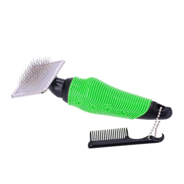 La brosse à poils fins R-GO Mini est idéale pour éclaircir le pelage en profondeur et en douceur. Grâce à ses poils fins et arrondis, il est possible de brosser son compagnon à quatre pattes en douceur, sans le griffer. En même temps, les poils détachés, le feutrage et les salissures du pelage sont éliminés efficacement et en profondeur. Les races à poils particulièrement durs et laineux ont généralement un sous-poil plus épais qui doit être brossé en profondeur. Trop de poils morts dans le pelage peuvent provoquer des démangeaisons, le brossage est alors un bienfait et l'animal à quatre pattes sera très heureux de ce soin de. Grâce à sa taille, la brosse à épiler R-GO convient aux chiens, chats et autres petits animaux. De plus, le manche ergonomique offre une utilisation confortable et la brosse est particulièrement facile à nettoyer grâce au nettoyant pour brosse inclus.