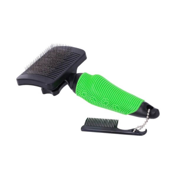 La brosse à poils fins R-GO est idéale pour éclaircir le pelage en profondeur et en douceur. Grâce à ses poils fins et arrondis, il est possible de brosser son compagnon à quatre pattes en douceur, sans le griffer. En même temps, les poils détachés, le feutrage et les salissures du pelage sont éliminés efficacement et en profondeur. Les races à poils durs et à poils laineux ont généralement un sous-poil plus épais, qui doit être brossé en profondeur. Trop de poils morts dans le pelage peuvent provoquer des démangeaisons, le brossage est alors un bienfait et l'animal à quatre pattes sera très heureux de ce soin. De plus, cette brosse à poils R-GO dispose d'un mécanisme autonettoyant qui libère les poils en une seule étape simple. Le toilettage devient ainsi super rapide et facile!