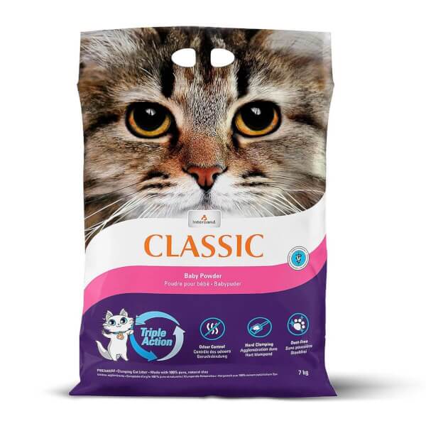 La litière Classic d'Intersand est fabriquée à partir d'argile de haute qualité extraite de la bentonite dans le Wyoming (États-Unis), puis traitée et produite au Canada. Grâce aux propriétés de l'argile, il ne faut que quelques secondes pour que les liquides s'agglomèrent en boules solides et compactes. Cela facilite le nettoyage quotidien et réduit la consommation de litière. Les petits granulés bleus contenus, fabriqués à partir de matériaux naturels, aident à masquer les odeurs désagréables sans utiliser de produits chimiques volatils. La litière pour chats est disponible en différents parfums. La litière est traitée avec un agent anti-poussière afin de créer un environnement propre et sain pour toute la famille.