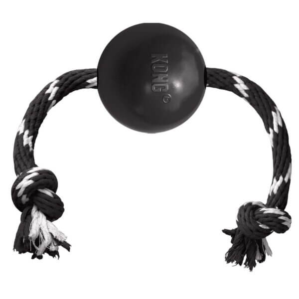 La balle KONG Extreme avec corde permet des jeux de rapport et de déchirure variés et de longue durée. La balle robuste est fabriquée en caoutchouc KONG Extrême et est conçue pour un plaisir interactif de longue durée. La corde 100 % coton récompense en outre un comportement de mastication approprié et masse en même temps les dents et les gencives. La plaque dentaire est ainsi éliminée et l'irrigation sanguine des gencives est améliorée. Tout cela permet de jouer longuement, ce qui stimule mentalement ton chien et l'enrichit.