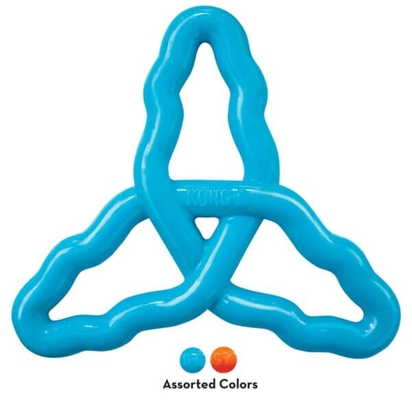 Le jouet KONG Flyangle récompense les instincts de récupération et de traction. Muni de trois poignées, il crée un rebond imprévisible tout en offrant différents points de prise pour un jeu interactif. Le matériau à la fois souple et solide du jouet permet de longues séances de jeu tout en prenant soin des dents et des gencives. Idéal pour les séances de traction entre deux chiens ou entre un chien adulte et un chiot, ce jouet flotte également sur l’eau pour une plus grande diversité de jeu.