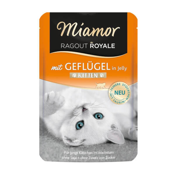 Miamor Ragout Royale pour chatons - De tendres morceaux préparés dans une gelée délicate, un aliment reconstituant très digeste et savoureux pour les chatons, avec une teneur énergétique accrue pour répondre aux besoins nutritionnels spécifiques de la phase de croissance. Procédé de conservation des vitamines. Sans colorants ni conservateurs.
