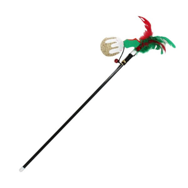 Cannes à pêche pour chats à thème de Noël avec de l'herbe à chat et une clochette : pour des moments interactifs de chasse et de jeu qui plongeront tous les chats dans l'ambiance festive !