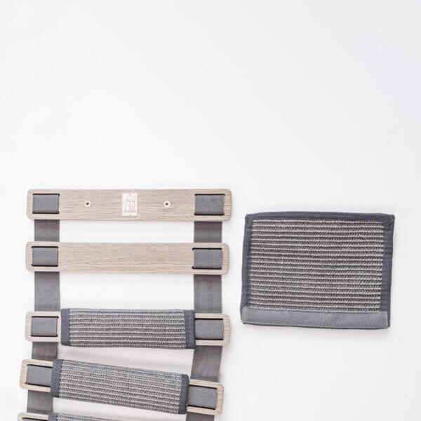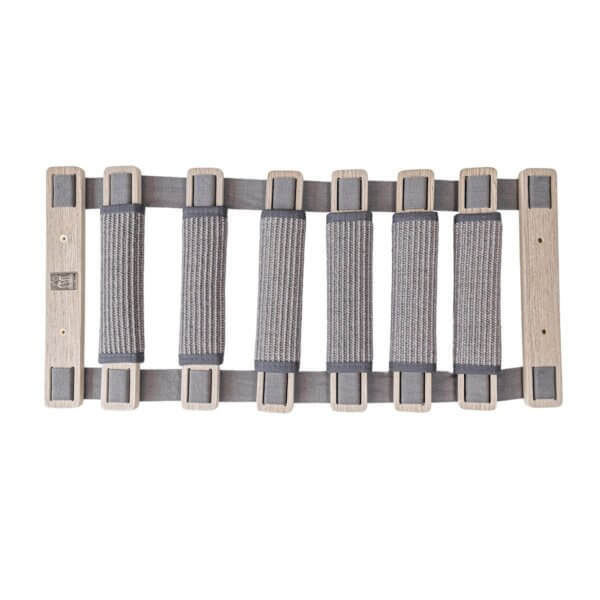 La Ladder 91 est une combinaison de marchepied et de griffoir, parfaite pour les chats qui aiment grimper et griffer. Cet élément polyvalent de la collection Wall of Rebels peut être combiné avec de nombreux autres éléments muraux. Les chats peuvent facilement grimper jusqu'au hamac Lazy 50, à la Box Bag ou au griffoir Scratch. Complétée par le Bridge 43, la Ladder transforme le mur pour chats en un terrain de jeu encore plus passionnant. La Ladder 91 est fabriquée en bois d'eucalyptus et recouverte de tapis de sisal amovible, offrant aux chats un plaisir supplémentaire pour griffer.