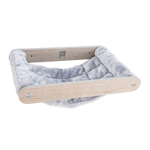La Lazy 50 est un hamac mural douillet pour chats, offrant l'endroit de repos parfait. Ce hamac moelleux fait partie de la collection Wall of Rebels et peut être facilement combiné avec d'autres éléments muraux. Qu'il soit relié au Bridge ou au Scratch 70, il s'intègre harmonieusement dans n'importe quel système. Pour les foyers avec plusieurs chats, il est conseillé de l'associer à la Box 60 ou à l'Oval Office. La Lazy 50 est fabriquée en bois d'eucalyptus solide et peut supporter les chats les plus lourds. Le revêtement en peluche douce est amovible et lavable, ce qui permet un entretien facile.