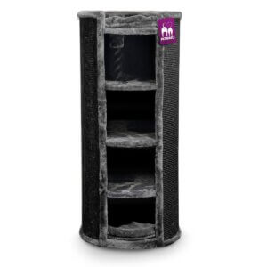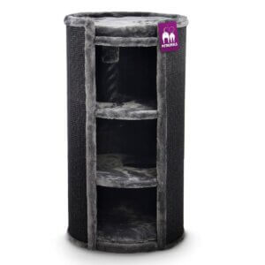 Petit frère du 197, le Scenic View 175 répond également à toutes les exigences d’un paradis de l’escalade. Avec son sisal naturel de 6 mm d’épaisseur et ses troncs gigantesques de 12 cm de diamètre, il peut facilement rivaliser avec son grand frère. C’est le même que le grand, mais en plus petit. Le hamac XL de 45 cm de diamètre supporte facilement 25 kg et a la capacité d’offrir aux chats fatigués des séances de rêve douillet. Un grand canapé luxueux avec des coussins moelleux pour couronner le tout, permet à chaque félin d’observer le monde d’en haut, exactement comme ils l’aiment. De plus, il présente une corde de jeu de 60 cm de long sur laquelle il pourra volontiers jouer à Tarzan au gré de ses envies. Les chats disposent également d’un hamac suspendu pour se détendre et d’une niche pour dormir. Le Scenic View 175 devient ainsi un véritable paradis et une pièce design. Des troncs allant jusqu’à 55 cm permettent de s’allonger, de s’étirer et de s’aiguiser facilement.