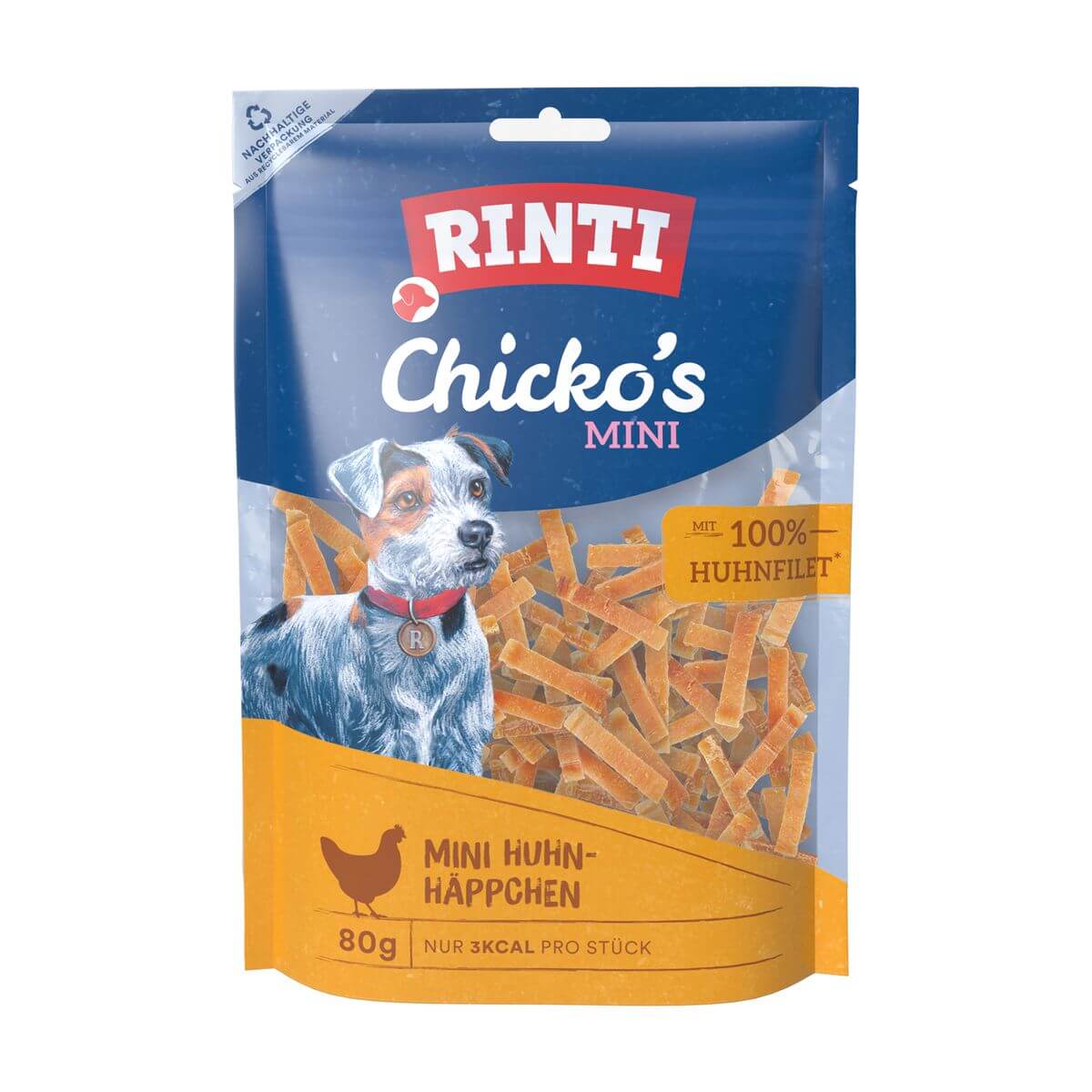 RINTI EXTRA AVEC LA GARANTIE DE VIANDE AUTHENTIQUE. Les bouchées Mini Chicko au poulet sont exclusivement préparées à partir de filet de poitrine de poulet frais, sans farines de viande, sans soja (extraits de protéines végétales) et en outre séchées à l'air avec ménagement, puis stérilisées. Non seulement elles sont particulièrement savoureuses, mais elles sont aussi très digestes. Les variantes Maxi, Mini et Slim offrent une taille adaptée à tous les appétits : Maxi pour les grands chiens, Mini fournit au chien de petits morceaux de viande et Slim sont des bandes minces pour les petits plaisirs.