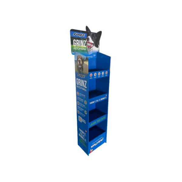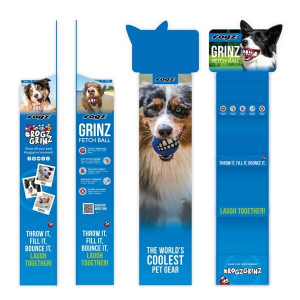 Nous avons un excellent produit et un emballage magnifique, mais il y a un autre élément pour mettre en valeur tes produits Rogz Grinz – le présentoir! Ce présentoir promotionnel Grinz est entièrement personnalisé et constitue un excellent moyen d'attirer l'attention de tes clients en magasin. Il est structurellement solide et comprend quatre étagères. De plus, il est entièrement emballé à plat, ce qui le rend facile à démonter et à déplacer.