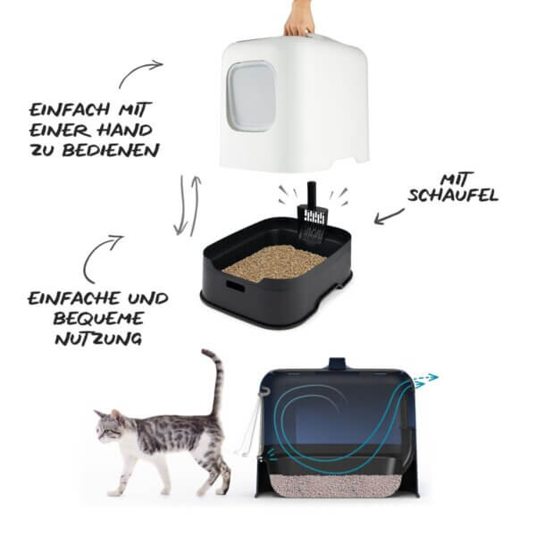 - Contenu de la livraison : 1 bac à litière avec couvercle "Biala" comprenant un bac, un couvercle, une trappe pour chat et une pelle