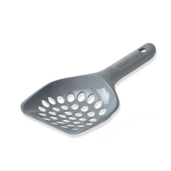 La pelle à chat moderne est adaptée aux litières agglomérées grossières. La pelle à litière Macro permet d'enlever les déchets sans effort.