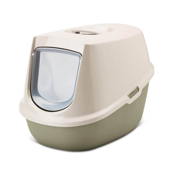 Le bac à litière Manon est composé à 90 % de matériaux recyclés, possède une porte battante et un filtre anti-odeur remplaçable. Grâce à la poignée intégrée, le bac à litière peut être facilement déplacé. Le capot est fixé au bac par des clips qui se détachent facilement pour le nettoyage. L'utilisation de matériaux recyclés nous permet de réduire notre impact sur la nature.
