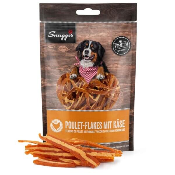 Aliment complémentaire pour chiens Composition: Poulet 90%, fromage 2%, sous-produits végétaux 5%, amidon 3%.