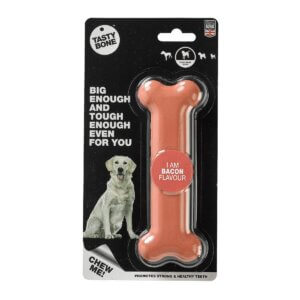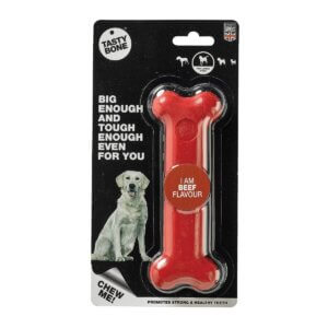 Le Tasty Bone est un jouet à mâcher pour chien au goût délicieux, qui se rapproche le plus possible de la réalité. Ce jouet pour chien est composé à 100 % de nylon solide et résistant. Unique jusqu'à la moelle, enrichi d'arômes irrésistibles, ton chien ne s'ennuiera jamais avec son goût durable. Ce jouet en os a été conçu pour éviter l'ennui et favoriser de bonnes habitudes de mastication. De plus, il contribue à la santé dentaire de ton chien. Cet os a un délicieux goût de fromage et convient parfaitement aux chiens de petite, moyenne et grande taille. Le Tasty Bone est disponible en plusieurs saveurs délicieuses et en trois tailles. Chaque Tasty Bone peut être nettoyé à l'eau tiède.