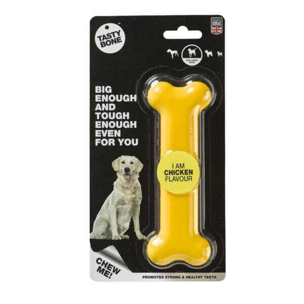 Le Tasty Bone est un jouet à mâcher pour chien au goût délicieux, qui se rapproche le plus possible de la réalité. Ce jouet pour chien est composé à 100 % de nylon solide et résistant. Unique jusqu'à la moelle, enrichi d'arômes irrésistibles, ton chien ne s'ennuiera jamais avec son goût durable. Ce jouet en os a été conçu pour éviter l'ennui et favoriser de bonnes habitudes de mastication. De plus, il contribue à la santé dentaire de ton chien. Cet os a un délicieux goût de fromage et convient parfaitement aux chiens de petite, moyenne et grande taille. Le Tasty Bone est disponible en plusieurs saveurs délicieuses et en trois tailles. Chaque Tasty Bone peut être nettoyé à l'eau tiède.