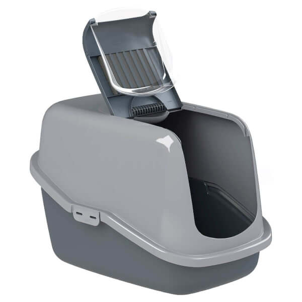 Eine Katzentoilette mit Haube für eine schnelle und unkomplizierte Reinigung.