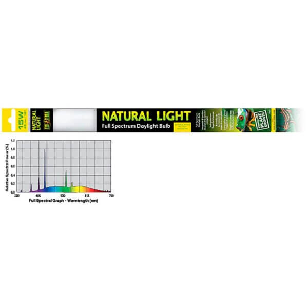 Die Exo Terra Natural Light ist eine Vollspektrum-Tageslichtlampe, die als allgemeine Lichtquelle für alle Terrarienarten geeignet ist. Dank der von der Exo Terra Natural Light ausgestossenen Wellenlängen können die Reptilien die Farben ihrer Umgebung natürlicher erleben und wahrnehmen. Die Exo Terra Natural Light trägt dazu bei, die Lebensbedingungen und das physiologische Wohlbefinden der Reptilien zu verbessern.