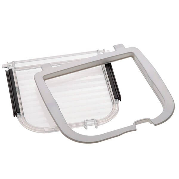 KIT 406 ist eine Ersatzklappe für Swing Hunde- und Katzentüren, kompatibel mit den Modellen Swing 5, Swing 7 und Swing Microchip. Der Windstopper-Rahmen, mit dem sie ausgestattet ist, bietet einen wirksamen Schutz gegen Zugluft.