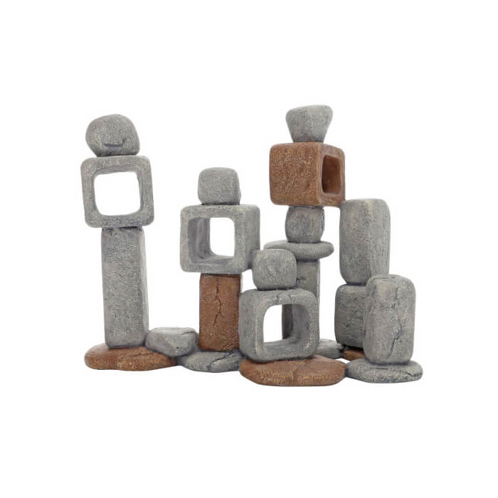 Garnelen und auch andere Aquarienbewohner sind begeistert von diesem Kletterturm für Aquarien! Besonders die Garnelen lieben es, die unterschiedlichen Türme nach Aufwuchs und Algen abzusuchen und diese dann abzuweiden. Dabei finden die Tiere in den Zwischenräumen und Öffnungen der Shrimp Trees, viele Verstecke und Ruheplätze. Durch die drei erhältlichen Varianten können die Aquarien abwechslungsreich gestaltet werden. Verschmutzungen durch z. B. Algen können dank der glatten Oberfläche leicht entfernt werden. Da sie aus einem sicheren, reaktionsträgen Material (Polyresin) hergestellt werden, haben Sie keinen Einfluss auf die Wasserqualität und die Klarheit des Wassers.