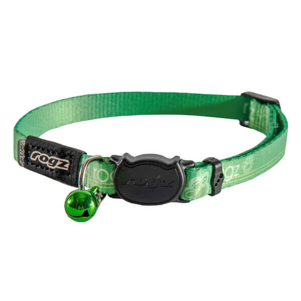 Das coole Katzenhalsband Kiddycat LimePaws erinnert an eine grüne Wiese, in der sich deine Samtpfote versteckt. Das Halsband ist mit einem variablen Sicherheitsverschluss ausgestattet, der sich bei übermässigem Zug öffnet. Zudem ist an dem Halsband ein Glöckchen angebracht.